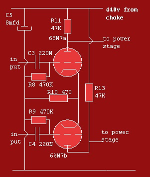 La etapa de entrada parece simple pero fue una novedad cuando la presentó Williamson. La ausencia de un condensador de entrada hace que la señal de entrada tenga que estar libre de componente continua,